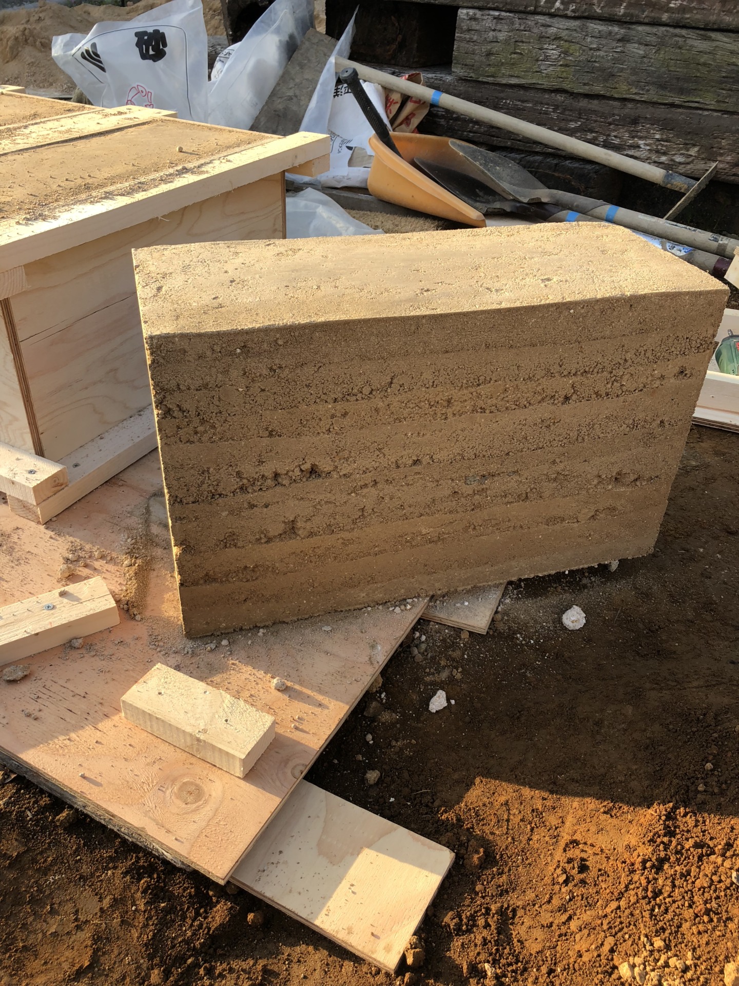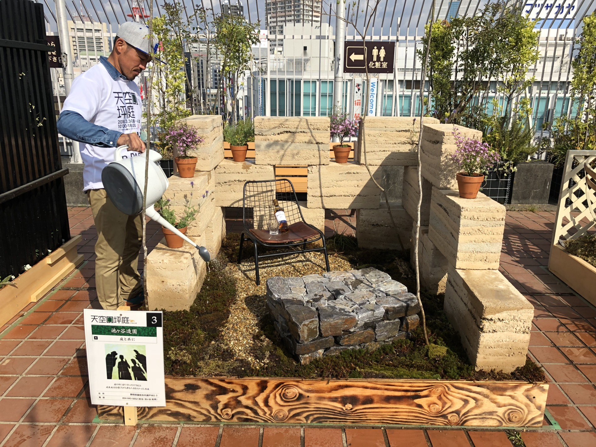 版築土塀と呼ばれる土を石灰やセメントなどと混ぜ突き固める工法を使い経年変化を人生とイメージして作庭しました。